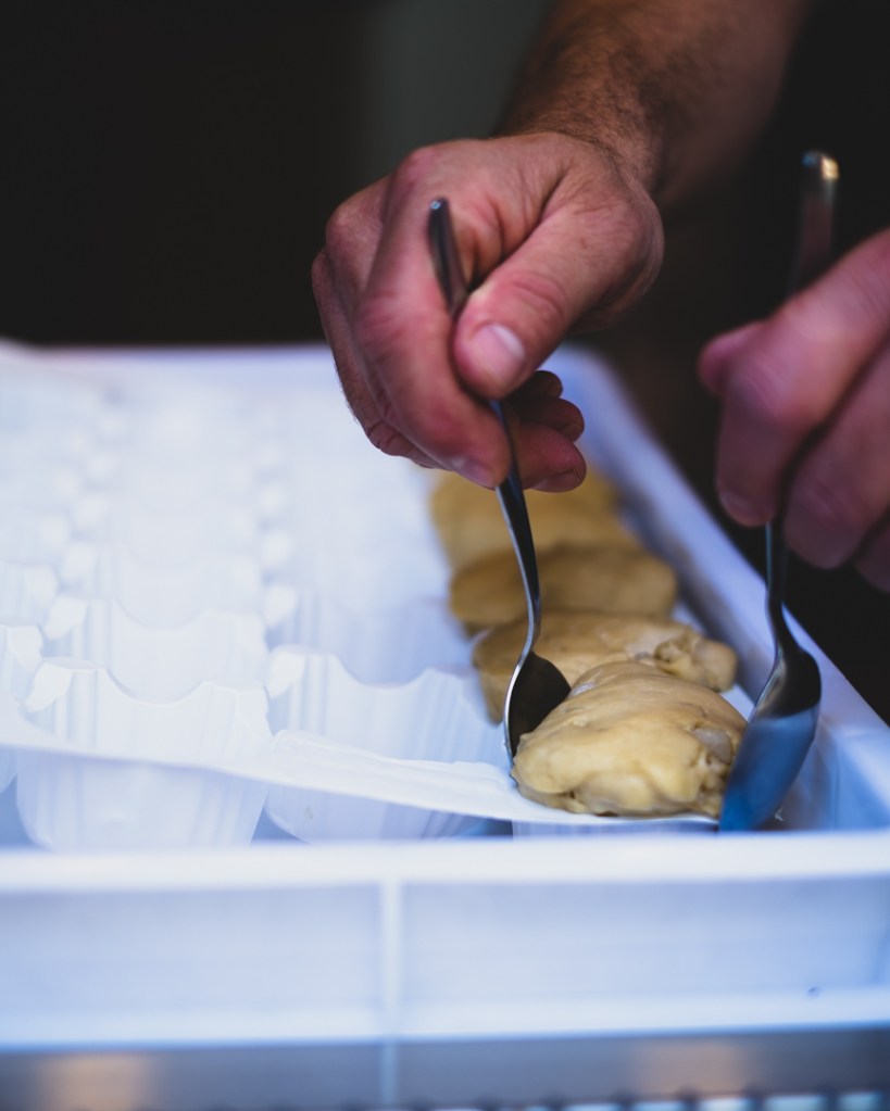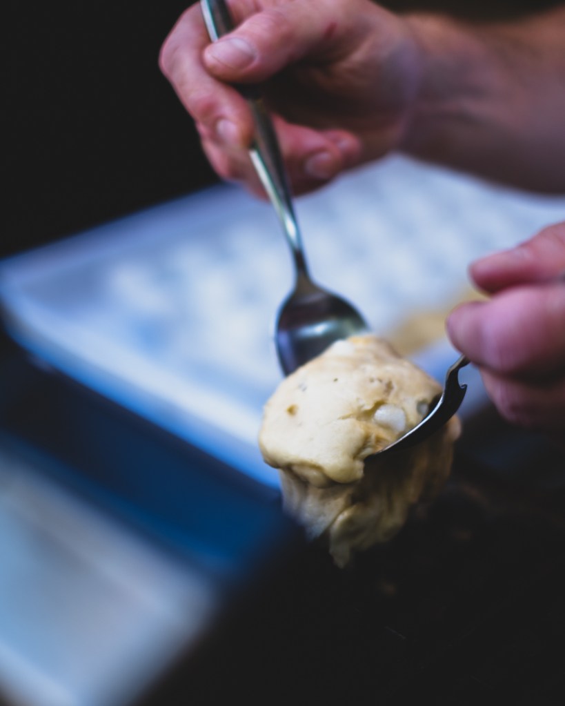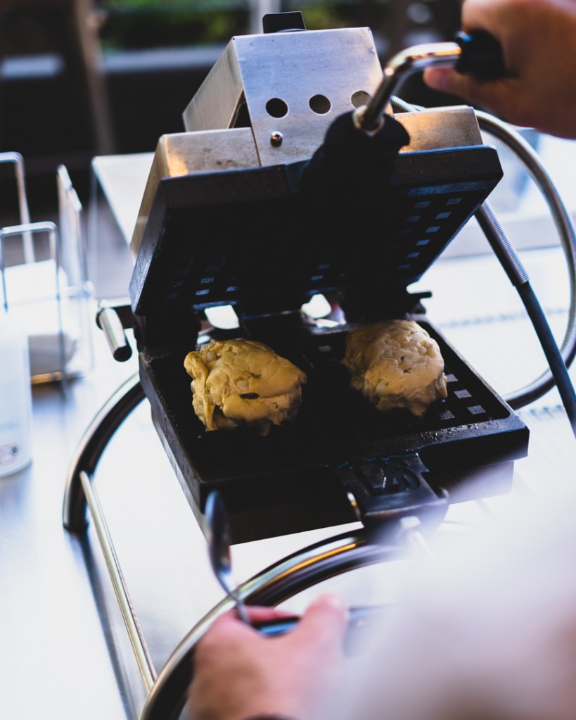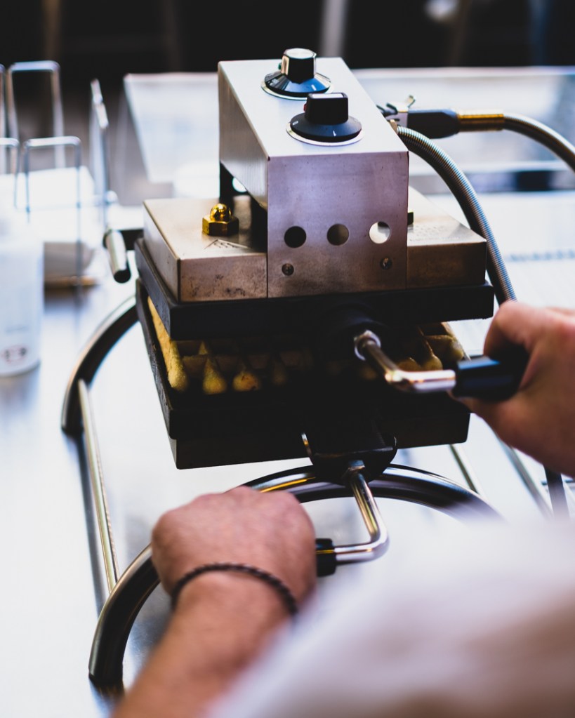 Ce petit caillou de douceur (le sucre perlé) va fondre et caraméliser en surface pendant la cuisson. C’est ce sucre qui confère à cette gaufre son originalité.